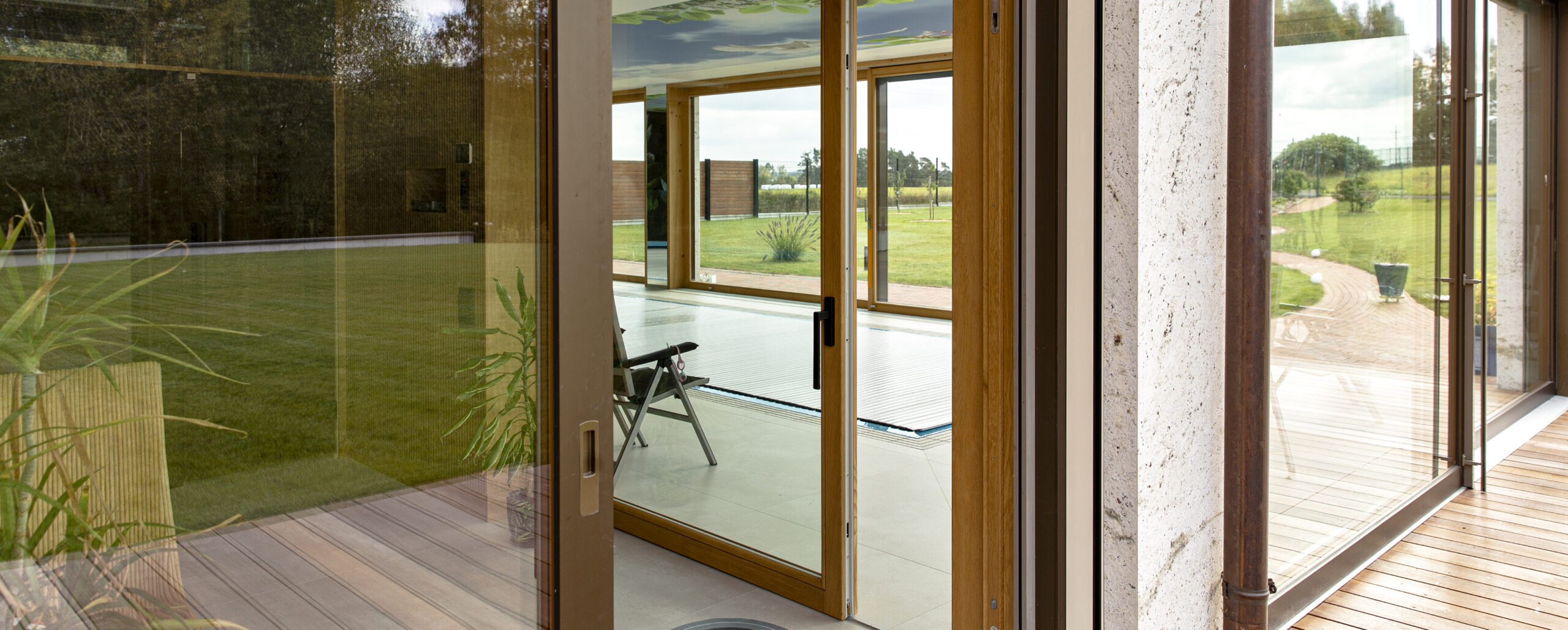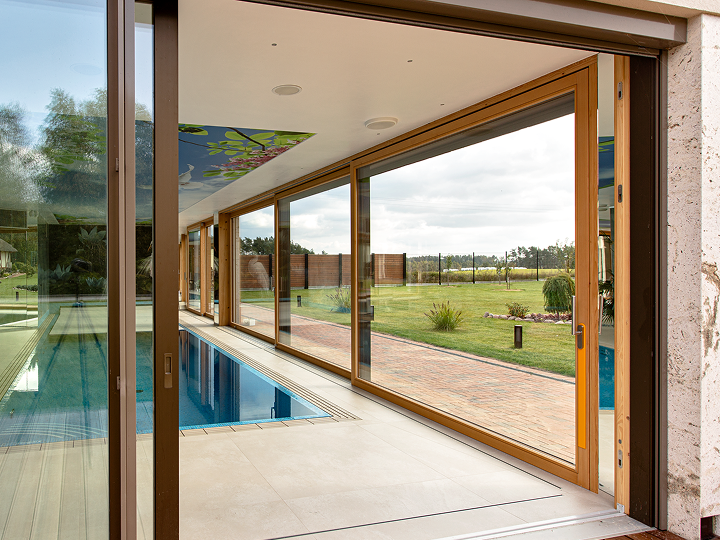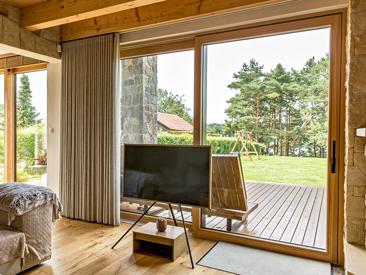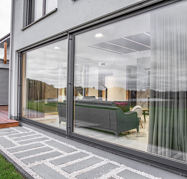 Okna HS to synonim nowoczesnej wygody i elegancji. Dzięki niskiemu progowi granica między wnętrzem a tarasem niemal znika, tworząc jednolitą, otwartą przestrzeń. Ogromne przeszklenia wprowadzają do domu naturalne światło, a płynne przesuwanie skrzydeł zapewnia lekkość i komfort użytkowania.